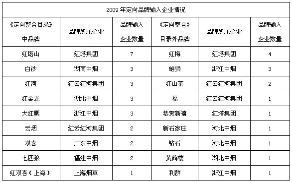 2009年在新煙稅類煙標(biāo)準(zhǔn)劃分下,各強(qiáng)勢(shì)工業(yè)企業(yè)加大了對(duì)國(guó)家局《關(guān)于卷煙品牌定向整合的指導(dǎo)意見》的執(zhí)行力度。提升了品牌定向整合的層次(擴(kuò)量、提檔),煙草行業(yè)競(jìng)爭(zhēng)主體正發(fā)生了重大變化,繞十多個(gè)為主體的“集群化”競(jìng)爭(zhēng)格局正在逐漸形成。如云煙系集團(tuán)群將以“玉溪”、“云煙”、“紅塔山”、“紅河”四大品牌為核心,向四川、貴州兩翼擴(kuò)展,形成東北、西南、海南三位一體的格局。其中紅塔集團(tuán):2003年紅塔控股海南紅塔卷煙有限責(zé)任公司、紅塔遼寧煙草有限責(zé)任公司(下轄營(yíng)口卷煙廠、沈陽(yáng)卷煙廠),參股吉林煙草工業(yè)有限責(zé)任公司(下轄長(zhǎng)春卷煙廠、延吉卷煙廠);2008年11月8日,合并了原紅河集團(tuán)昭通卷煙廠,成為新的紅塔集團(tuán);2009年3月,川渝中煙和紅塔集團(tuán)共同成立中國(guó)長(zhǎng)城雪茄有限責(zé)任公司,由川渝控股,紅塔參股,股權(quán)比例大致為51%和49%。2009年8月,紅塔集團(tuán)市場(chǎng)營(yíng)銷中心東北分中心的成立,表明了紅塔集團(tuán)在跨省重組后,在品牌整合的基礎(chǔ)上進(jìn)一步推動(dòng)資源整合的決心。其中,新成立的紅云紅河集團(tuán)擁有昆明、紅河、曲靖、會(huì)澤、新疆、烏蘭浩特等七個(gè)卷煙廠。同時(shí),還控股山西昆明卷煙有限責(zé)任公司,參股內(nèi)蒙古昆明卷煙有限責(zé)任公司。目前整個(gè)云煙系生產(chǎn)規(guī)模近900萬(wàn)箱,擴(kuò)張后有可能達(dá)到上千萬(wàn)箱,成為中國(guó)煙草第一集團(tuán)群。