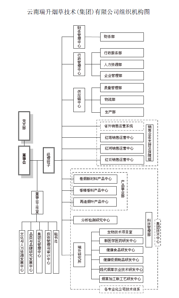 云南瑞升煙草技術(集團)有限公司是從事煙草新技術、新材料研究開發(fā)和配套產品提供的專業(yè)化技術型企業(yè)集團,目前已發(fā)展成為中國從事煙草品質提高、減害降焦、環(huán)境友好相關技術和材料開發(fā)的,專業(yè)設置全面、綜合研發(fā)實力最強的煙草技術公司。