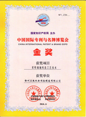徐州眾凱公司由徐州市科技局組織本市重點(diǎn)自主創(chuàng)新技術(shù)產(chǎn)品組團(tuán)參加了本次國(guó)際專(zhuān)利與名牌博覽會(huì)。在本次展會(huì)上,徐州眾凱公司擁有完全自主知識(shí)產(chǎn)權(quán)的創(chuàng)新技術(shù)產(chǎn)品---柔性就地風(fēng)選工藝技術(shù)榮獲“金獎(jiǎng)”。徐州眾凱公司同時(shí)獲得“專(zhuān)利優(yōu)秀企業(yè)”稱號(hào),并獲得證書(shū)及獎(jiǎng)杯。