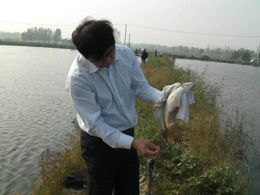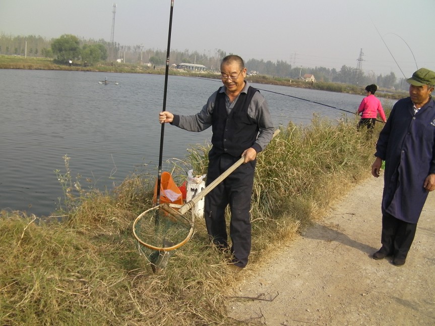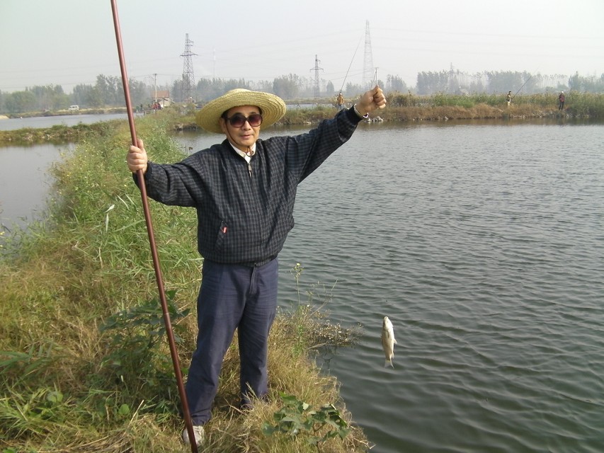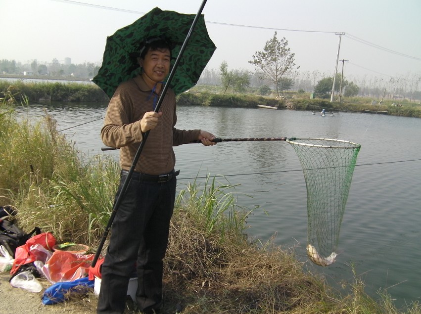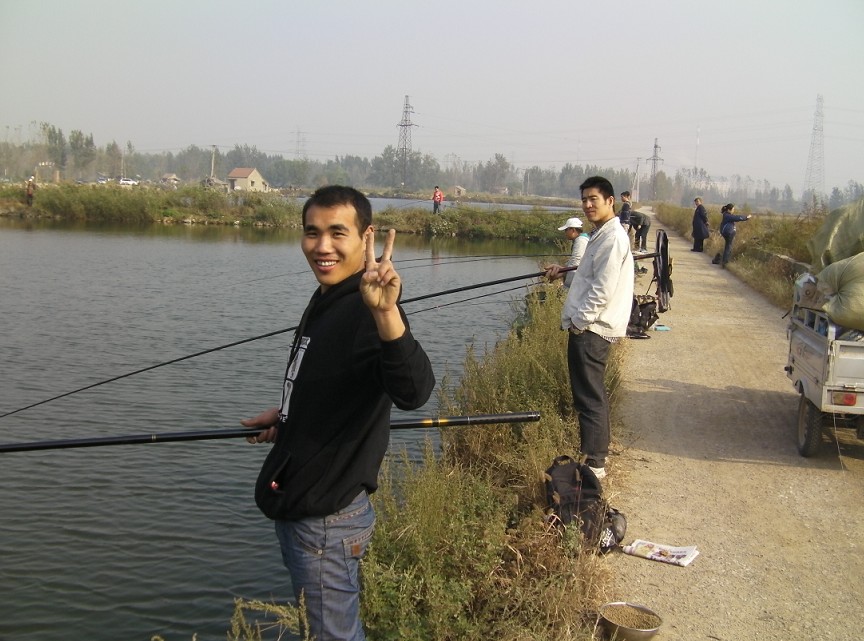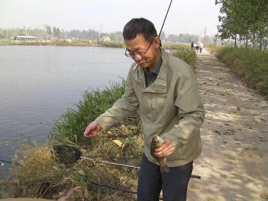 半小時后到達(dá)目的地。大家迫不急待拿出魚具,數(shù)十條魚竿分列池塘周圍,場面煞是壯觀。大家全神貫注,忙得不亦樂乎。投食,拌餌上食,串食,等浮漂,提竿,抄魚……上鉤魚兒 “噼啪”的拍水聲和大家的歡呼聲此起彼伏,映襯著一池碧水別有情趣。