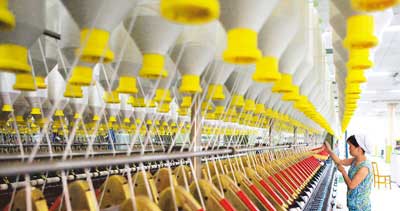 | 10月21日的江西九江一家紡織廠的工人在紡紗 張海巖攝(新華社發(fā)) |