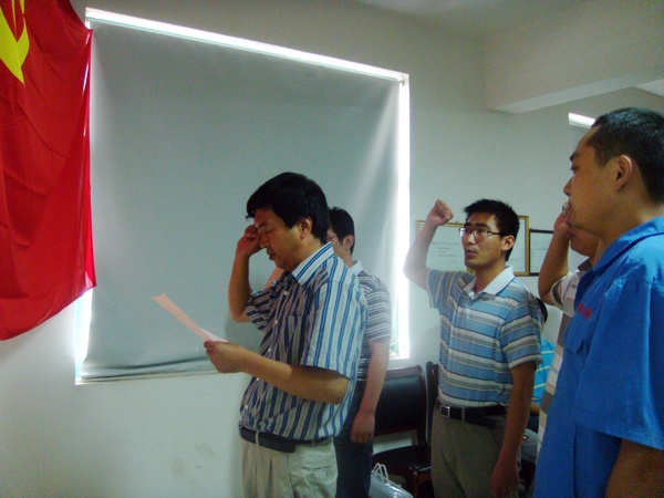 張輝等四名預(yù)備黨員,在王總帶領(lǐng)下,面對(duì)黨旗,莊嚴(yán)宣誓,洪亮的宣誓詞鼓舞了他們,也激勵(lì)了大家。張輝、黨員代表代利分別發(fā)了言,他們表示今后要敢于承擔(dān)責(zé)任,努力工作,充分發(fā)揮共產(chǎn)黨員模范帶頭作用,為公司又好又快地發(fā)展做出貢獻(xiàn)。