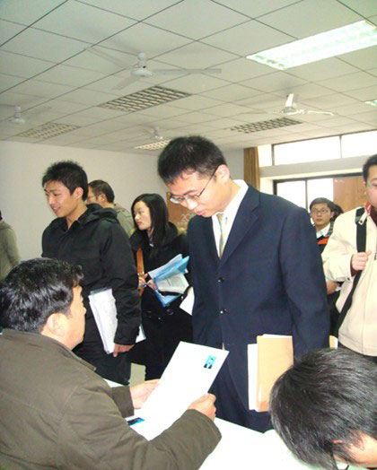 剛到招聘指定教室,早已在旁久候的學(xué)子們即自覺地排成兩排整齊的隊伍等待面試,這次招聘會共面試篩選接收各專業(yè)學(xué)生簡歷161份。
