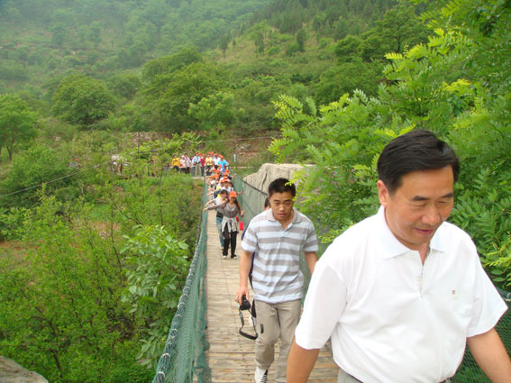 早上7點,公司近100名人員分乘兩輛空調(diào)旅游車,赴國家地質(zhì)公園、天下奇觀——熊耳山,游覽雙龍大裂谷、龍抓崖、含玉石、天街走廊、臥虎洞、古風亭等景點。