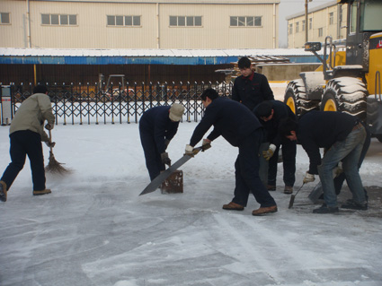 2月11日,徐州普降今冬第一場大雪。今天是上班最后一天,盡管道路很滑,大家依然按時到達(dá)公司。個別同事甚至一路步行過來上班。到公司后,發(fā)現(xiàn)早到的同事已經(jīng)開始自覺的清掃積雪。由于昨晚下了大量凍雨,地面早已結(jié)冰,積雪掃干凈后,地面依然很滑。大家八仙過海各顯神通,有的拿掃帚、有的用鐵鍬、有的用鐵棍、鐵板等各種工具來鏟除滑冰,清理路面,以確保大家的出行安全及生產(chǎn)活動的正常開展。