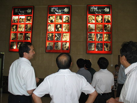 閆亞明院長(zhǎng)首先陪同客人參觀了鄭州院科技成果展覽以及“名人與煙”、“百姓與煙”等宣傳畫,來(lái)訪客人們?cè)谛麄鳟嬊榜v足良久,饒有興趣地爭(zhēng)相猜測(cè)名人的名字。周昌貢總經(jīng)理表示,這個(gè)創(chuàng)意非常好,反映了煙民的普遍性,看到他們,我們的工作才更有動(dòng)力。