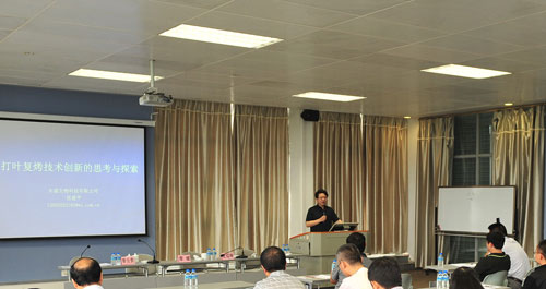 培訓(xùn)專門聘請(qǐng)了煙草行業(yè)專家張建平博士作了題為《打葉復(fù)烤技術(shù)創(chuàng)新的思考與探索》的專題講座。從技術(shù)創(chuàng)新、核心質(zhì)量評(píng)價(jià)、質(zhì)量均勻性、工藝優(yōu)化、核心競(jìng)爭(zhēng)力五方面對(duì)打葉復(fù)烤技術(shù)作了深入的講解,內(nèi)容詳實(shí),分析透徹。學(xué)員們紛紛表示講課內(nèi)容對(duì)工作具有很強(qiáng)的針對(duì)性,視野寬,觀念新,很受啟發(fā)。