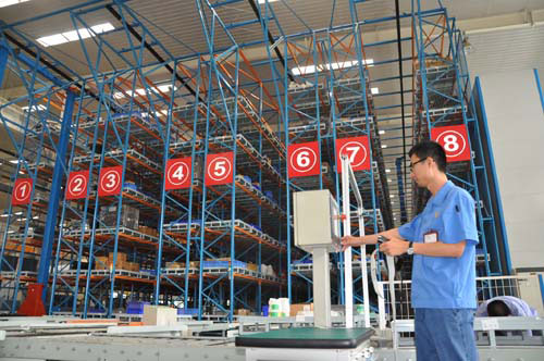 系統(tǒng)管理替代人工管理提高工作效率,庫存清晰,現(xiàn)場整潔有序。圖為秦皇島煙機公司倉儲物流部立體庫操作工在進行零配件出庫操作。姜兆華攝