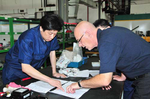 為更好地滿足用戶需求,許昌煙機公司去年開展了由質量、營銷部門以及各分廠參加的聯(lián)合走訪用戶活動。圖為走訪小組在廣州卷煙廠現(xiàn)場查看公司產(chǎn)品運行情況。周文昭攝