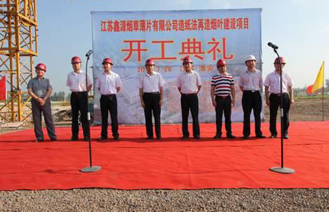 煙草在線據(jù)江蘇中煙消息報道 7月26日上午,江蘇鑫源煙草薄片有限公司造紙法再造煙葉項目施工現(xiàn)場彩旗飄飄、鞭炮齊鳴、機聲隆隆,項目土建一標段正式開工,揭開了土建工程建設的序幕。鑫源公司全體干部職工、項目各參建方代表一同參加了開工儀式。