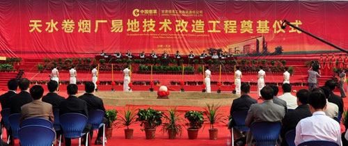 5月16日上午,甘肅省天水市國家級經(jīng)濟技術(shù)開發(fā)區(qū)社棠工業(yè)園區(qū)鼓聲陣陣、禮炮聲聲,氣氛喜慶熱烈?偼顿Y13億多元的甘肅煙草工業(yè)有限責(zé)任公司天水卷煙廠易地技術(shù)改造工程奠基儀式在這里隆重舉行!