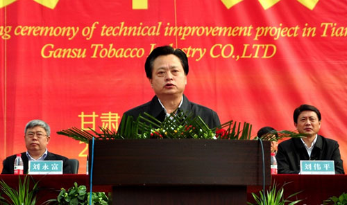 劉永富在奠基儀式上致辭,他說,國家煙草專賣局決定實施天水卷煙廠易地技術(shù)改造項目工程,為甘肅煙草工業(yè)加快發(fā)展注入了強大動力。甘肅煙草工業(yè)有限責(zé)任公司要全面貫徹實施卷煙上水平戰(zhàn)略,落實樹品牌、做貢獻要求,加快工程建設(shè)進度,加速技術(shù)創(chuàng)新能力,加強卷煙品牌建設(shè),科學(xué)管理,保證質(zhì)量,努力把天水卷煙廠建設(shè)成為技術(shù)、管理、產(chǎn)品、效益一流的優(yōu)秀企業(yè),促進甘肅煙草工業(yè)在更高層次、更高水平取得更好更快的發(fā)展。天水市委、市政府和省直各有關(guān)部門,要全力關(guān)心支持這個項目,及時解決項目建設(shè)中存在的困難和問題,確保項目早日建成投產(chǎn)!