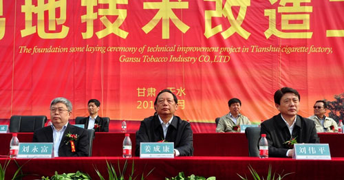 張建軍代表國家煙草專賣局、中煙實業(yè)發(fā)展中心向天水卷煙廠易地技術(shù)改造工程奠基表示祝賀。他說,為了進一步增強甘肅煙草工業(yè)發(fā)展的后勁與活力,國家煙草專賣局決定實施天水卷煙廠易地技術(shù)改造工程。希望甘肅煙草工業(yè)有限責(zé)任公司在工程建設(shè)中堅持高標(biāo)準(zhǔn),嚴(yán)要求,精心組織、規(guī)范運行、突出重點、嚴(yán)格管理,努力打造具有核心競爭能力的一流卷煙工程,大力提高甘肅煙草工業(yè)生產(chǎn)制造水平、成本控制水平、現(xiàn)代化建設(shè)水平和質(zhì)量安全水平,全面提高甘肅煙草工業(yè)的整體發(fā)展實力,為推動甘肅科學(xué)發(fā)展、轉(zhuǎn)型跨越、民族團結(jié)、富民興隴大業(yè),實現(xiàn)與全國同步進入全面小康社會做出新的更大的貢獻。
