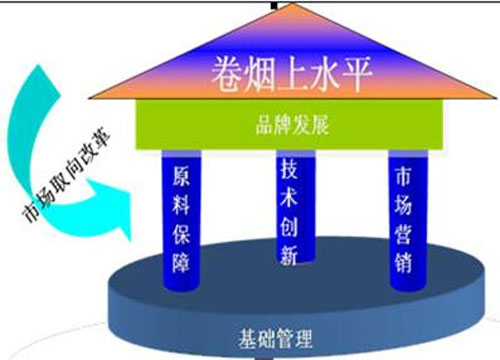 對于中國煙草行業(yè)來講,國家局今年推動的“卷煙上水平”是一次重大變革,這次變革是以品牌發(fā)展上水平為主要特征的,其主要內(nèi)容包含品牌上水平、原料上水平、技術(shù)上水平、營銷上水平和基礎(chǔ)管理上水平五個方面,其基本關(guān)系為: