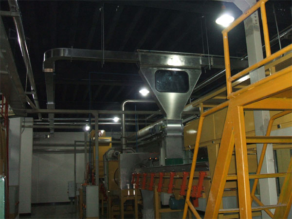 二、工作原理: 方管低速輸送系統(tǒng)的水平管道風(fēng)速在10m/s~15m/s之間,這使得物料在輸送過程中的造碎極小,能耗也大大降低,在煙絲結(jié)構(gòu)幾乎不變的條件下,可以完成平穩(wěn)的落料,并且具有很好的除雜效果。有效解決了煙絲的造碎問題及煙支卷接過程中卷煙機(jī)對梗簽的剔除難度。提高了葉絲的包容性、純凈度、松散程度等,為提高煙支的卷接質(zhì)量創(chuàng)造了條件。被輸送的物料首先進(jìn)入垂直管道進(jìn)行氣力提升及風(fēng)選除雜,然后經(jīng)水平輸送后進(jìn)入沉降式落料箱體進(jìn)行氣料分離,物料由出料機(jī)構(gòu)進(jìn)入下道工序,從而實(shí)現(xiàn)物料的長距離低速柔性輸送。
